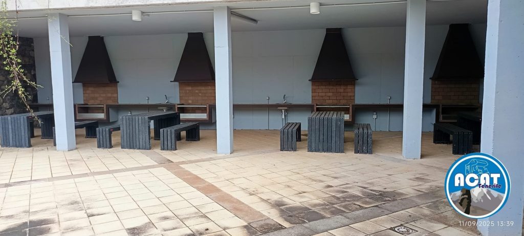 También nos mostró el Área de Pernocta junto al Área Recreativa que si está en uso (no se admite perros) con un precio de 4,50 € (Lunes a Viernes) y 9,50 € (Sábados y Domingos), con su Punto Limpio completo (carga y descarga de aguas), así como baños.