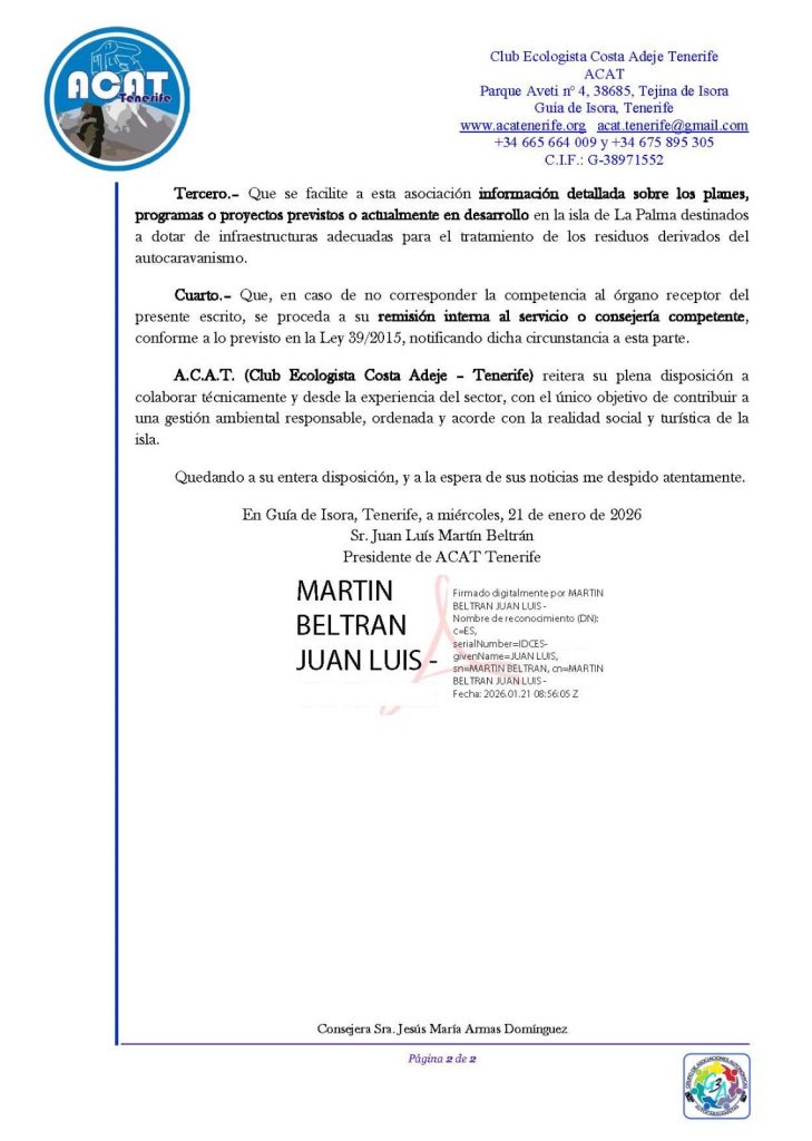 📌 Asimismo, solicitamos información detallada sobre los planes, programas o proyectos previstos o en desarrollo en la isla para mejorar la gestión de residuos derivados del autocaravanismo, contribuyendo a una práctica sostenible y ordenada.